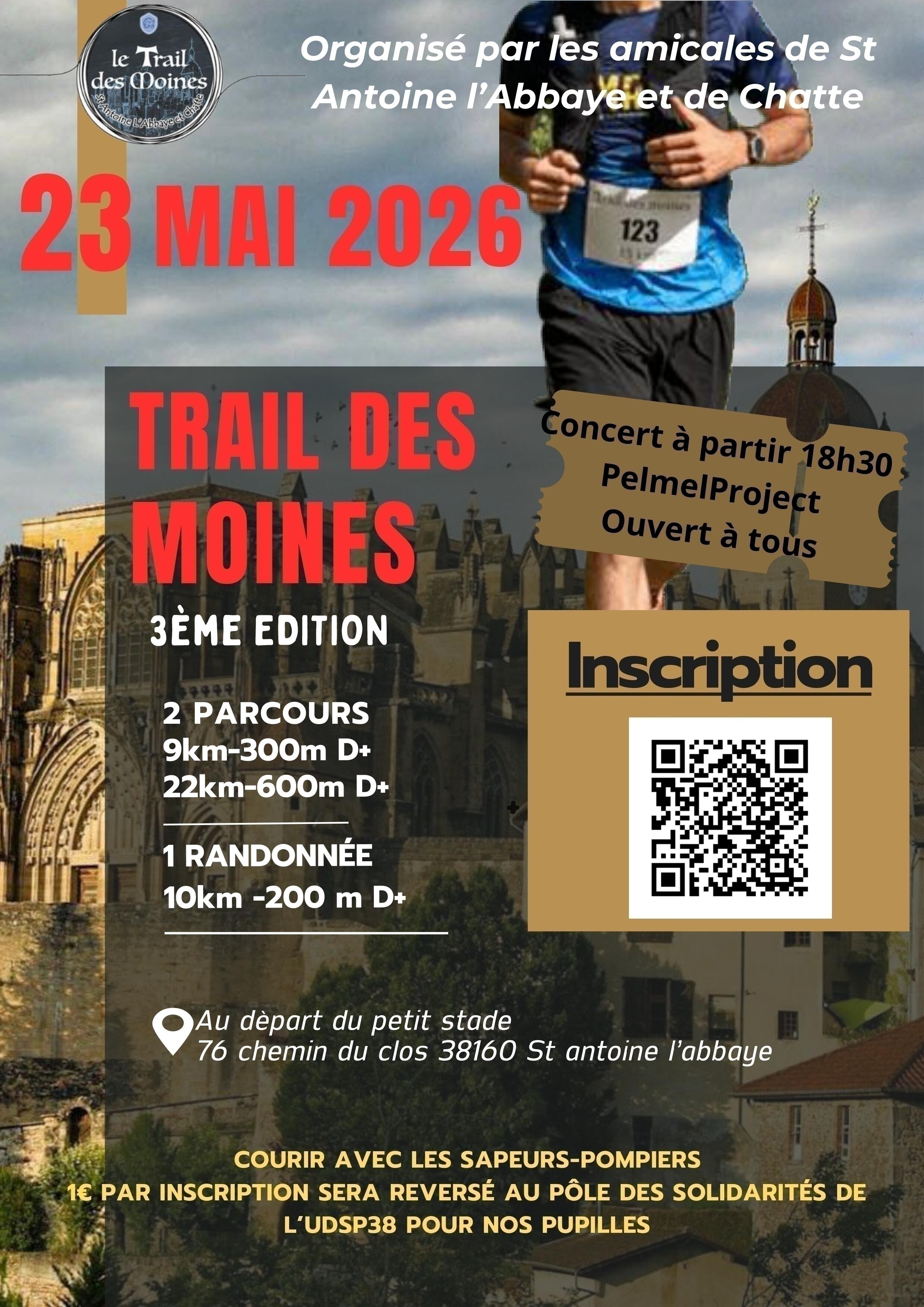 Les amicales des sapeurs-pompiers de Saint Antoine L'Abbaye et de Chatte vous donnent rendez-vous pour la troisième édition du « Trail des Moines », en collaboration avec l'association « Les Sentiers Antonins »